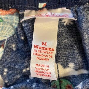 CHRISTMAS WOMEN’S TWO PIECE LONG SLEEVE PAJAMA SET SIZE M. LIGHTLY WORN AND CLEAN. TOP HAS BUTTON CLOSURE, LONG SLEEVES AND POCKET ON LEFT CHEST AREA. PANTS HAVE ELASTIC WAIST WITH DRAWSTRING. NO POCKETS. SOFT AND COMFY MATERIAL. 100% COTTON. HOT AIR BALLOONS PRINT WITH SANTA AND REINDEER, SNOW, SNOWFLAKES AND CANDY CANES. PLEASE SEE MEASUREMENTS. NON SMOKING NON PET HOME.