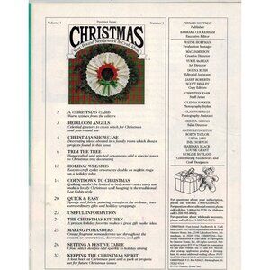 This collector's premier issue of "Christmas: Year-Round Needlework & Craft Ideas" offers over 30 fabulous cross-stitch and craft projects celebrating the festive season. The contents include intricate heirloom angel cross-stitch patterns, family room decorating ideas, tree ornaments to create, and timeless quilting projects like a log cabin wall hanging. Detailed visual charts, DMC color codes, and step-by-step instructions are provided for various designs, ensuring both ease and accuracy in crafting. Additional sections cover holiday wreaths, festive napkin rings, and instructions for making pomanders, along with thoughtful gift ideas and decorative accents for your Christmas celebration. This vintage magazine is a treasure trove for crafty individuals and collectors of nostalgic holiday projects.