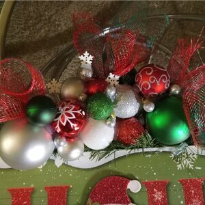 Handcrafted 19"x10" HOLIDAY DOOR/WALL DECOR. ONE-OF-A-KIND piece with loads of sparkle and personality. All decor is secured via hot glue. Fluff & Hang.