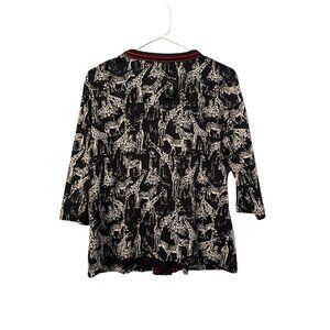 CHRISTOPHER & BANKS WOMEN'S BLACK STRETCH KNIT JACKET - ZEBRA GIRAFFE PRINT L