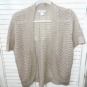 CHRISTOPHER BANKS Womens Taupe Tan Cotton/Rayon S/S Open Front Sweater Petite XL
