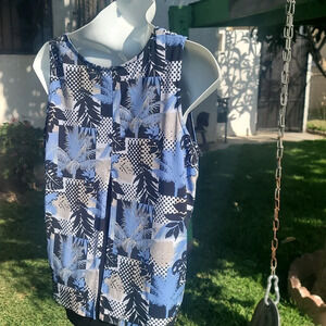 CHRISTOPHER & Banks xl double layer tank top black white blue leaves polka dots