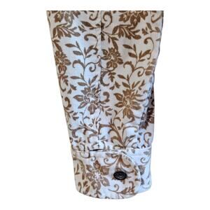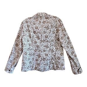 CHRISTOPHER CJ BANKS Women's Size M Corduroy Blazer Jacket - Button Up, Tan & White, Floral, Metal Buttons. Pockets, Long Sleeve, 98% Cotton, 2% Spandex