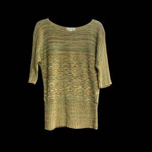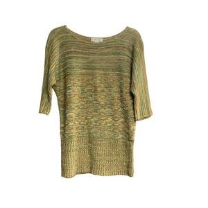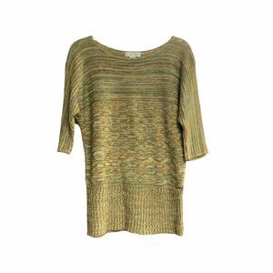 CHRISTOPHER & BANKS Gold Sweater With Green Metallic Threads Size Petite Small
