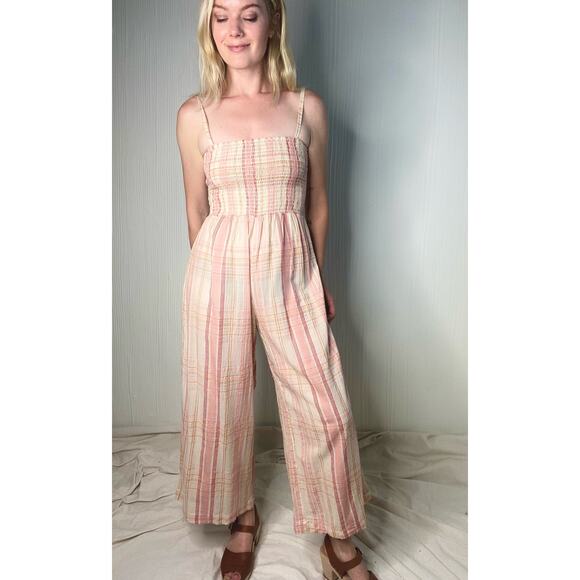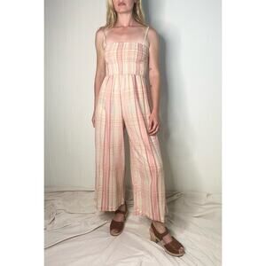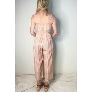 CHRISTY DAWN Avery Pink Plaid Smocked Bust Cotton Jumpsuit US XSMALL
