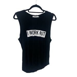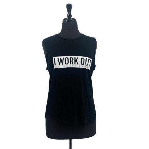 CHRLDR Women’s Black Graphic “I Work Out Just Kidding I Take Naps” Tank Top Sz S
