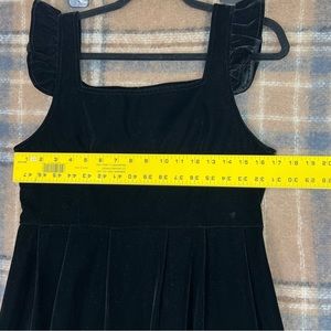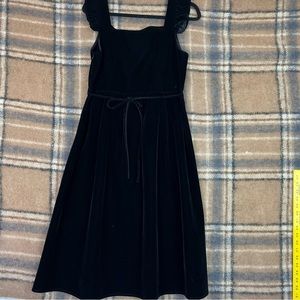 CHU DU CLASSIC FASHION SQUARE-NECK RUFFLE STRAP VELVET MIDI DRESS SIZE:L BLACK