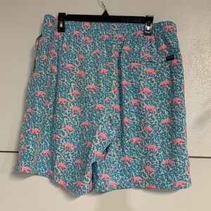 CHUBBIES MENS DOMINGOS ARE FOR FLAMINGOS SWIM TRUNKS PINK BLUE XXL 7” INSEAM