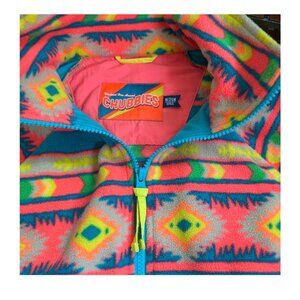CHUBBIES Medium Men's Full Zip Fleece Jacket Neon Aztec Print NWoT