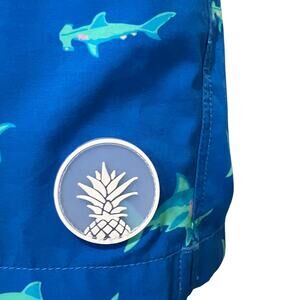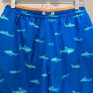 CHUBBIES Swimwear Sz MD Lined Trunks Blue Shark Print Elastic Waist 5.5" Inseam