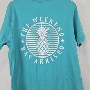CHUBBIES The Weekend Has Arrived Men Medium Seafoam Green Preppy Graphic T-Shirt EUC