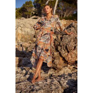 Printed with the most beautiful Peruvian landscapes, this tunic is made out of Crepe de Chine that makes for a breathable and chic outfit. It has a delicate drawstring with tassels, long sleeves, and a handkerchief hem to enjoy the warm breeze.