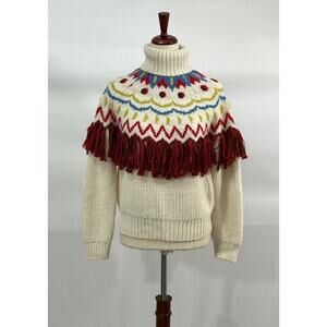 CHUFY Sz XS Hans Cream Fair Isle Pullover Fringe Turtleneck Sweater NWT Alpaca