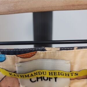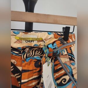 The CHUFY Kathmandu Heights Keket Shorts in size Small are a bohemian-inspired piece crafted from 100% organic cotton. These navy shorts feature pleated detailing and a self-tie belt, offering both comfort and style.