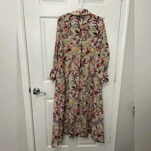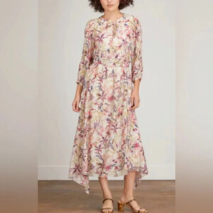 The Mila Maxi Dress is cut from super light cotton-silk blend voile. It has 3/4 sleeves with puff shoulder that tapers delicately towards the cuff. Featuring functional pockets, this light maxi dress is perfect for travel. The collar can be closed as desired using the matching strings.