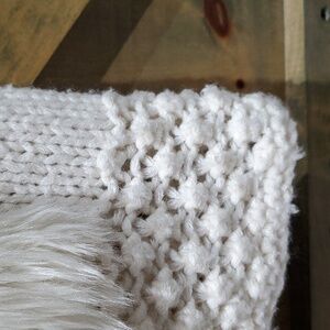 CHUNKY CREAM HAND KNIT SWEATER VEST W HOODIE FAUX FUR SIZE MEDIUM