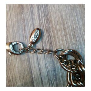 Chunky chain charm bracelet with rhinestone crosses, skulls and hearts. Brand is in picture 3 hard to read.