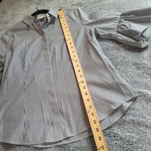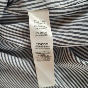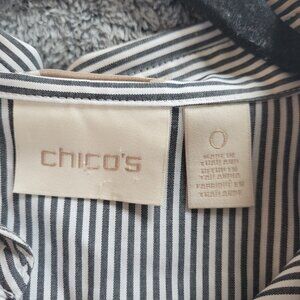 CHicos Womens Top Small Gray White Stripe Button Up Flounce Sleeve Cotton 16668