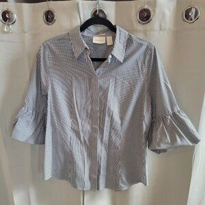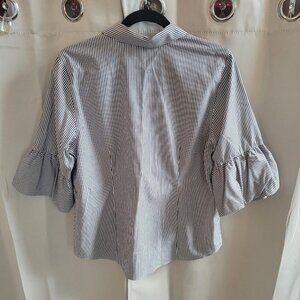 Chicos Womens Top Small Gray White Stripe Button Up Flounce Sleeve Cotton 16668
