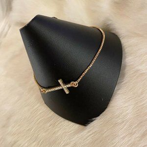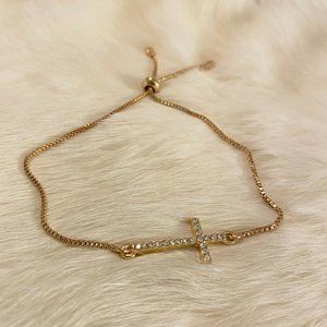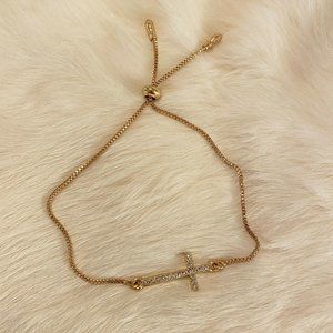 Christian Cross Rhinestone Slide Bracelet Gold Tone Metal Box Chain 6442