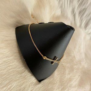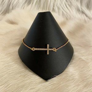 CHristian Cross Rhinestone Slide Bracelet Gold Tone Metal Box Chain 6442