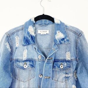 Ci Sono Light Wash denim distressed jean jacket. Large. Excellent pre-owned condition.
