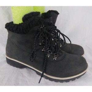 CI SONO Red Gray Puffer Zip Vest Attached HOOD Sherpa Lined Juniors Women Large.