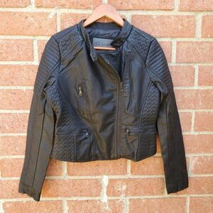 CI SONO Vegan Leather Motto Jacket With Detailed Texture Zip Up Biker