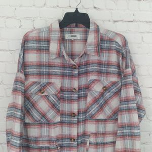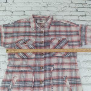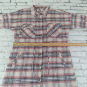 CI Sono Plaid Collection Dress Women Medium Red Blue Long Seeve Drawstring Dress