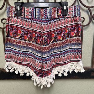 CI Sono multi print embroidered lace hem pull on shorts Size Medium