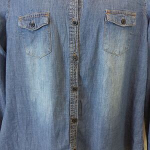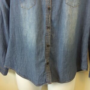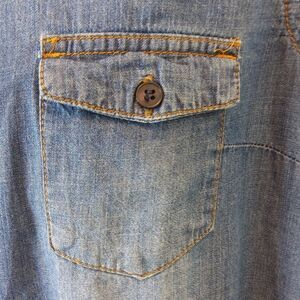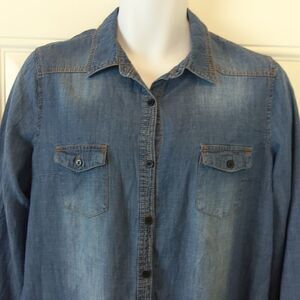 CI Sono blue chambray mildly distressed long sleeve button front shirt