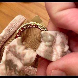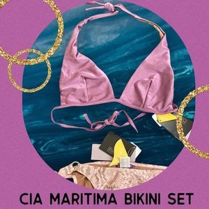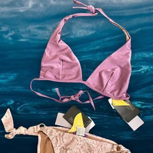 The pink & lilac snakeskin pattern bikini bottom has flirty scarf-like ties and gold logo rings. Side hip ties are just the right amount of sassy& logo hardware kisses your bum with a flash of gold! Sexy "Cheeky" fit on the bottom. The top is fully lined.