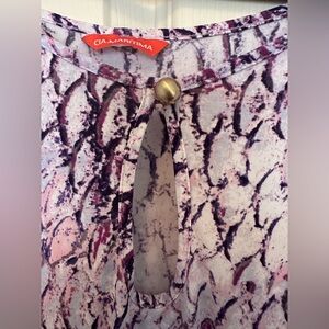 Long Luxurious sleeves, Low Waisted. Can be worn as a mini dress or a swim suit cover up. Has gold button closure and gold on the main tie around the hips if worn low waisted. It’s very silky stretchy comfortable material similar to other cover ups with expensive . Has not been worn and there are no tags indicating size or material so see measurements below. Fits like a true Medium. Pink and Purple all shades and white. Perfect to wear to country club, resort, vacation, beach, poolside, parties, lounge.