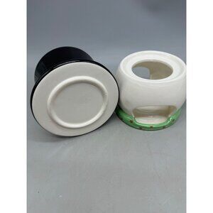 CIB snow much fun Christmas snowman fondue set 2 pc ceramic top hat scarf READ
