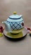 CIC handpainted ceramic teapot yellow blue and white with matching creamer