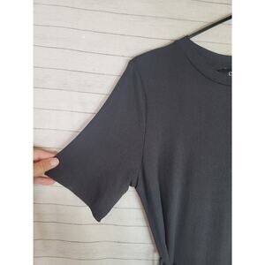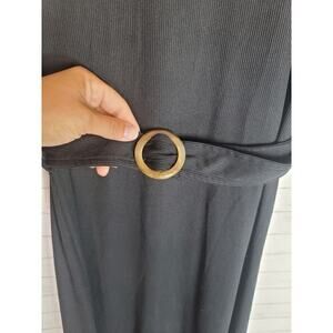 CIDER BELTED SHORT SLEEVE RIBBED BLACK MIDI DRESS, SZ XS