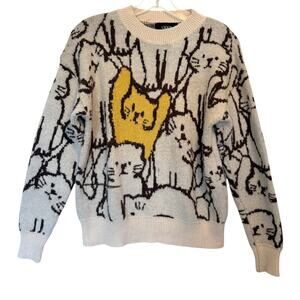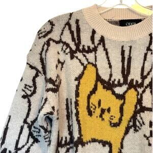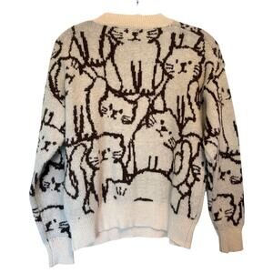 CIDER Cat Sweater Womens Small Cream Crewneck Novelty Cats Chunky Knit Pullover