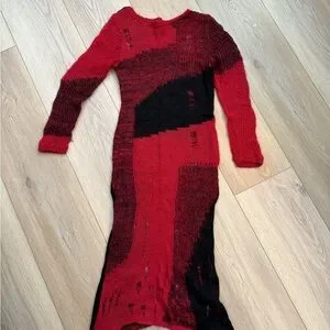 CIDER KNIT PATCHWORK RIPPED DRESS