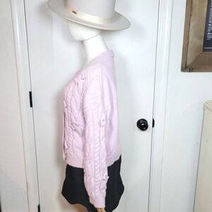 CIDER Pink Cable Knit Bow Button Cardigan Sweater Medium Cottagecore Coquette