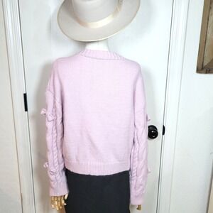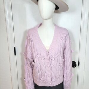 CIDER Lavender Cable Knit Bow Button Cardigan Sweater Size M Cottagecore Coquette