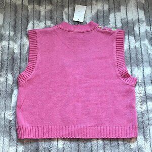 CIDER Soft Diamond Check Pattern Patchy Knit Button Front Vest Pink Size Large