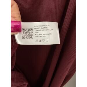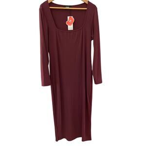 CIDER Solid Square Neck Long Sleeve Ribbed Midi Dress in Wine Size XL