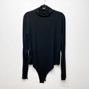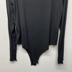 CIDER women's ribbed black bodysuit. Turtleneck. Long sleeves. Stretch. Snap button closure. In good used condition. No stains, tears or holes.