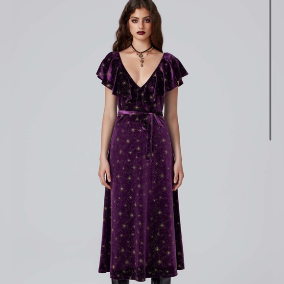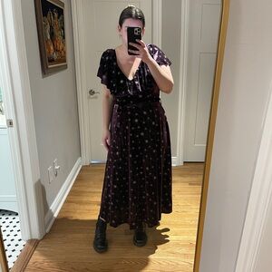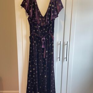 CIDER VELVET V-NECK STAR RUFFLE TIE BACK MIDI DRESS 0XL