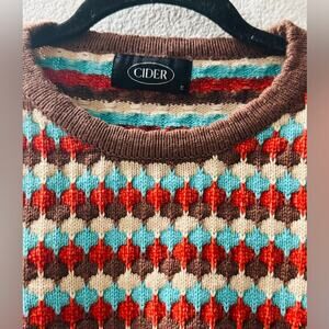 CIDER adorable retro chunky knit crop sweater with puff sleeves, size small.