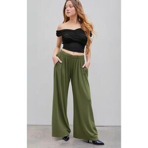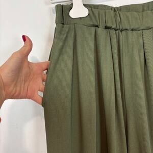 CIDER Wide Leg Pants Pleated Ribbed Pull On Green M