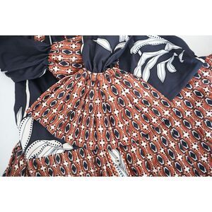 CIEBON Women's Sz S Black Multi Edda Pleated Tie Neck L/S Satin Mini Dress