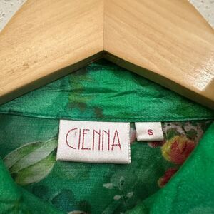 CIENNA Floral Shirt Womens Sz S Green Button Up Roll Tab Sleeve Satin Silk Boho W11380