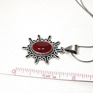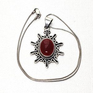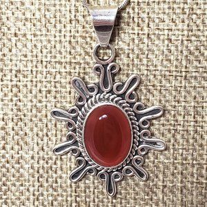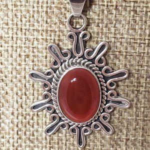 CII Mexico Silver 925 Carnelian Brown Natural Gemstone Large Sunburst Pendant