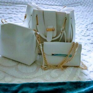 Cilia 3in One Satchel .Faux leather Set Includes A Satchel With Magnetic Closure And Adjustable/Moveable Strap 13wx11 hx5d) Zip Crossbody (8.25wx7.5 "hx3.25"d) And Clutch Chain Strap,8.25'wx4.5"h Large Bag Has Top Handle,Sleek Casual Style.Use It When You Go Out Shop Travel Or Party.Large Capacity Tote Bag Has Dust Bag, Color White New.